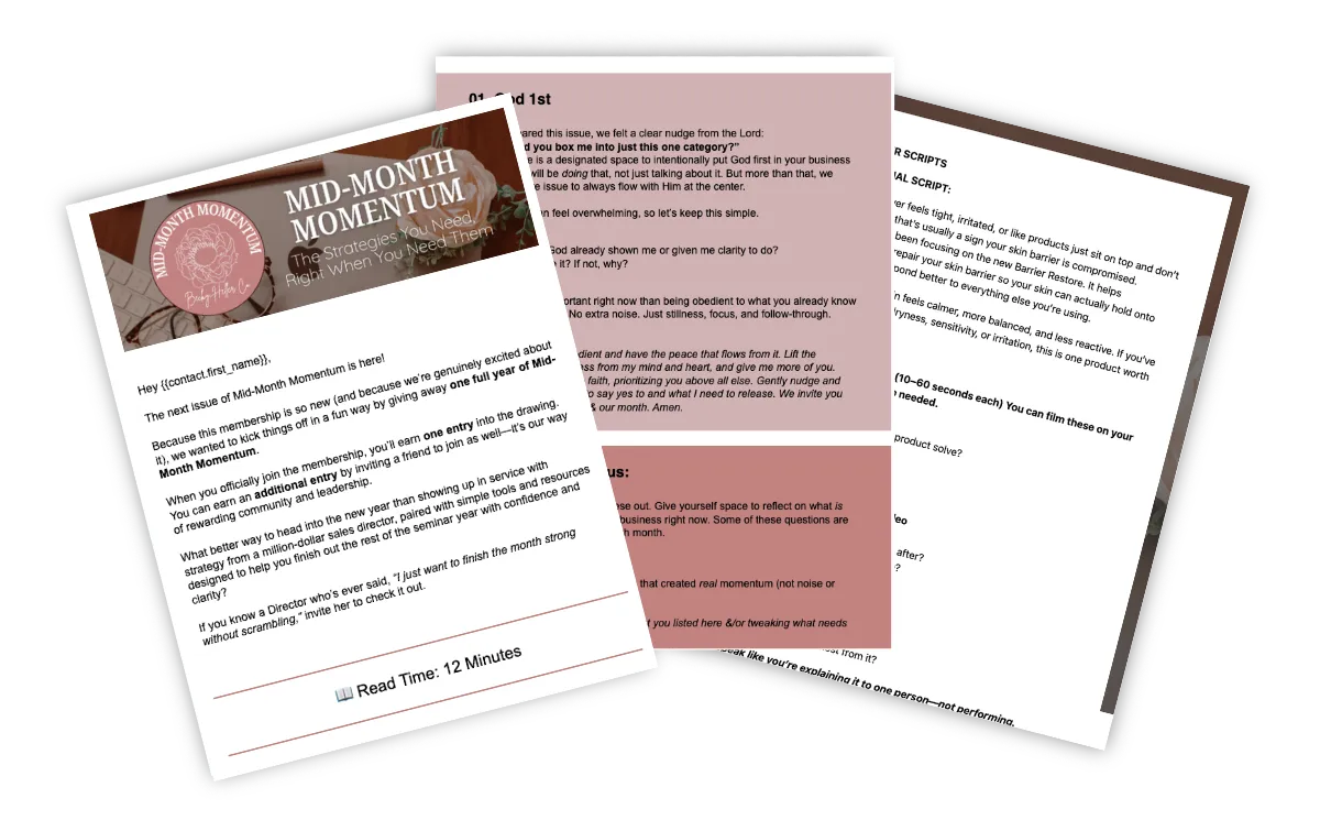 Mid-Month Momentum is a monthly email for Mary Kay Directors designed to help you pause, reset, and refocus mid-month without overwhelm.